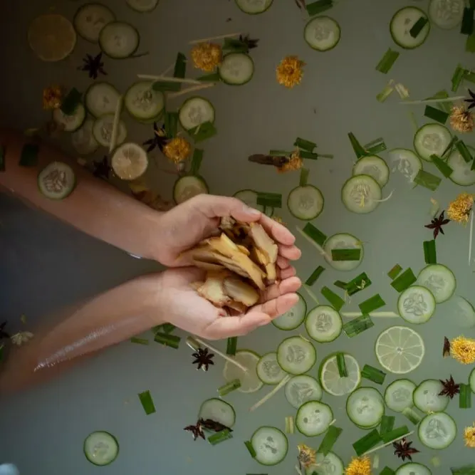 — Carefully soap yourself while imagining the negative energy is leaving your body and draining under the water.