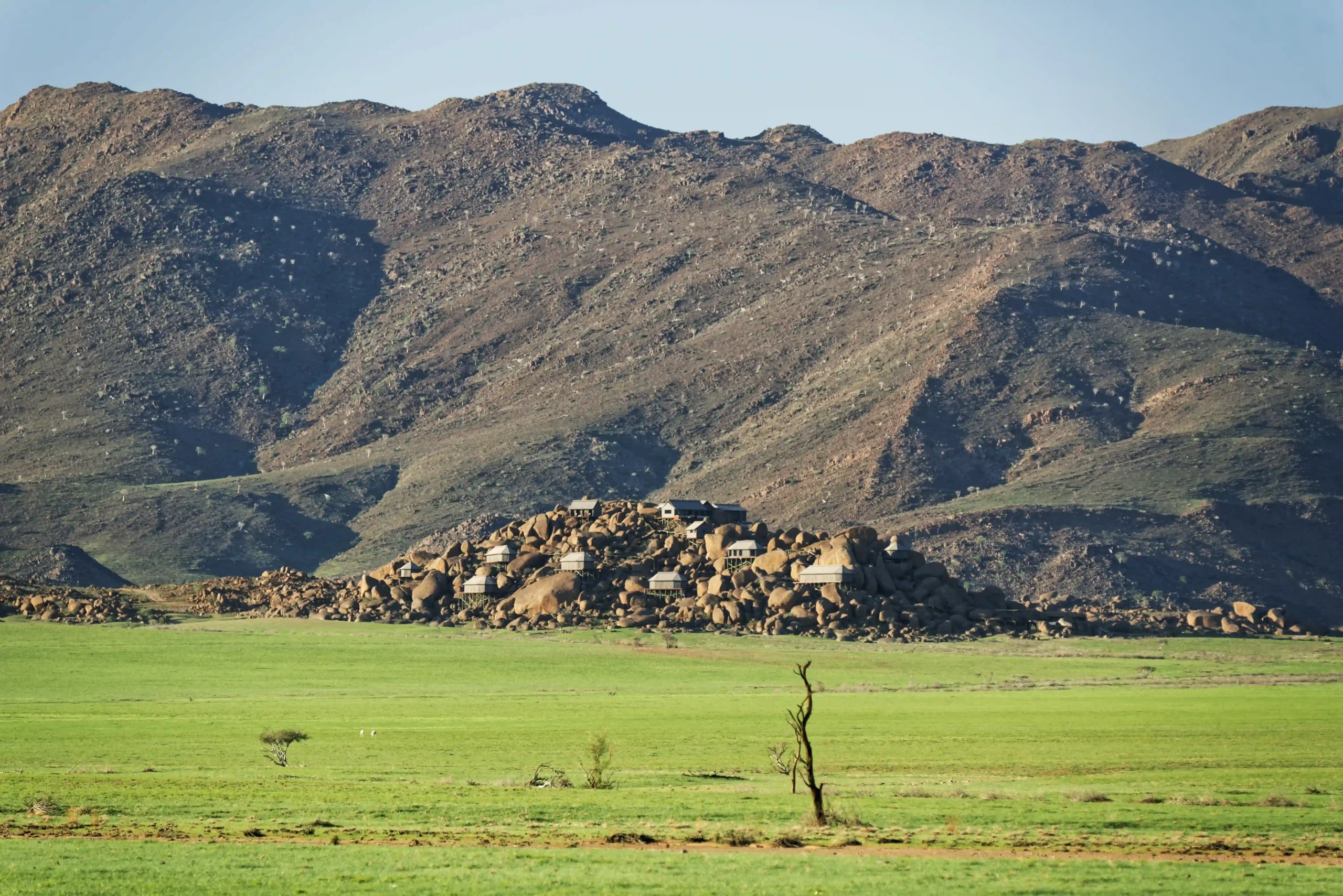 Located in the middle of beautiful yet arid Namib Desert, Zannier Sonop is not expecting rain very often throughout the year. When this unpredictable event occurs few days each rainy season, a magical atmosphere can be felt all around the lodge, putting a smile on everyone’s face: the desert turns green.
