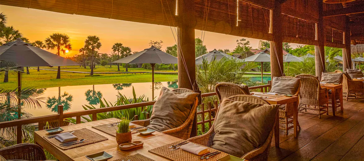 45 stilted villas modelled on a traditional Khmer village, surrounded by 20 acres of tranquillity on the threshold of ancient Angkor Wat.
