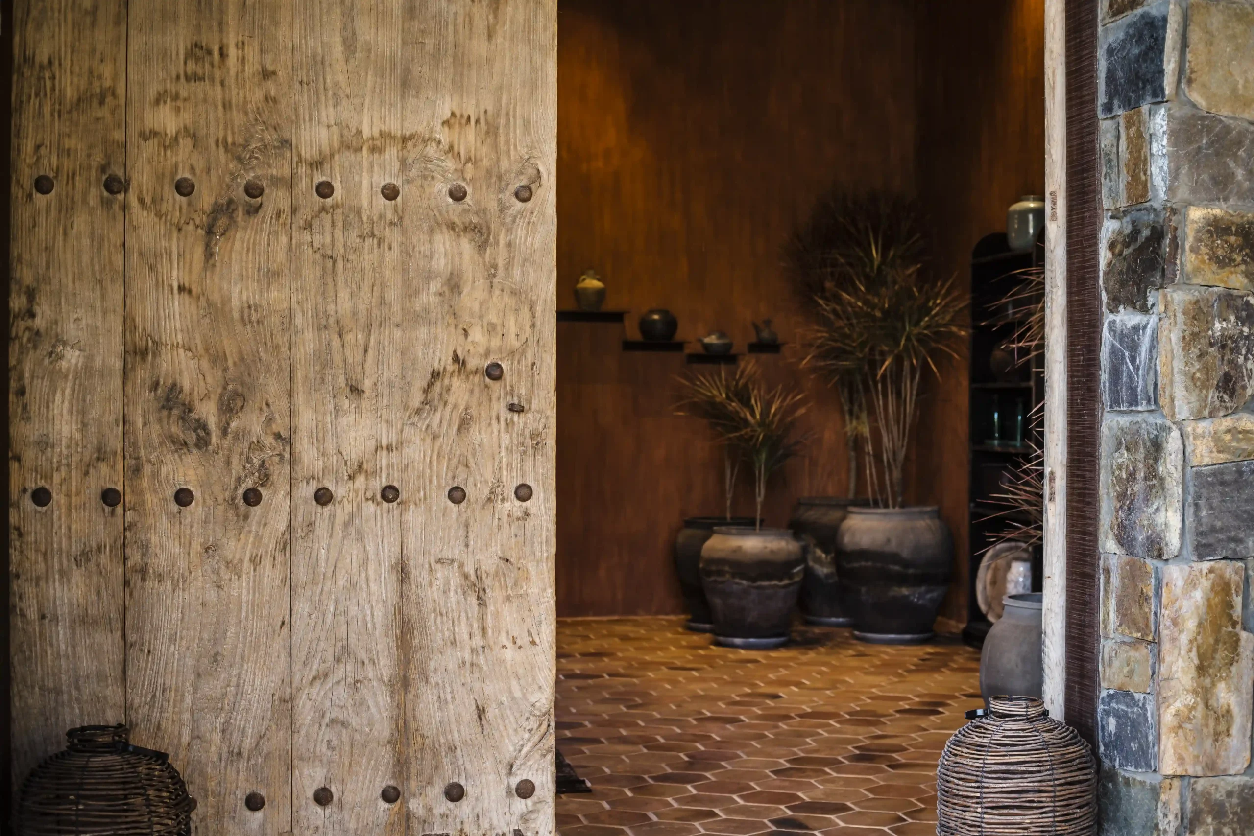 Doors also hold a spiritual significance. They allow a transition from outdoor to indoor areas, creating de facto a separation between different atmospheres. At Phum Baitang or Bãi San Hô for instance, they allow the transition from the wild garden surrounding each villa to the serene and comfortable interiors of the accommodations.