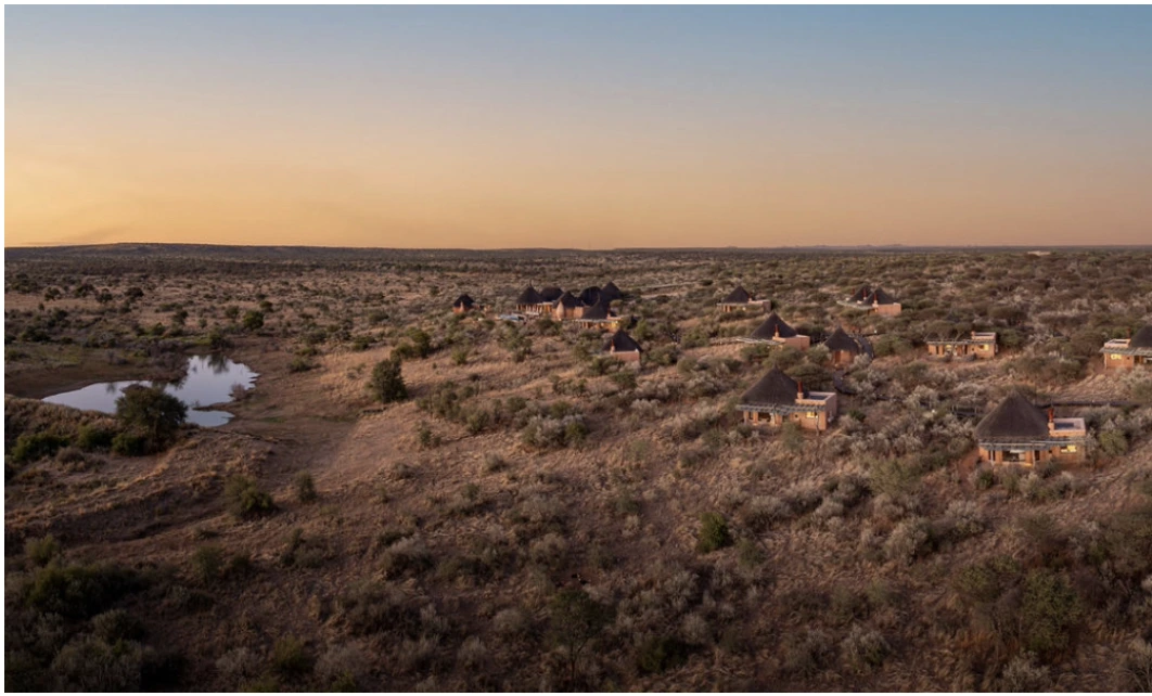 À l’est de Windhoek, au cœur de la Zannier Reserve, les quinze huttes en chaume et argile s’ancrent dans 8 900 hectares de nature sauvage. Plus qu’un lodge, c’est un modèle de tourisme responsable dont les revenus financent intégralement les programmes de conservation de la réserve, aux côtés du sanctuaire N/a’an ku sê.