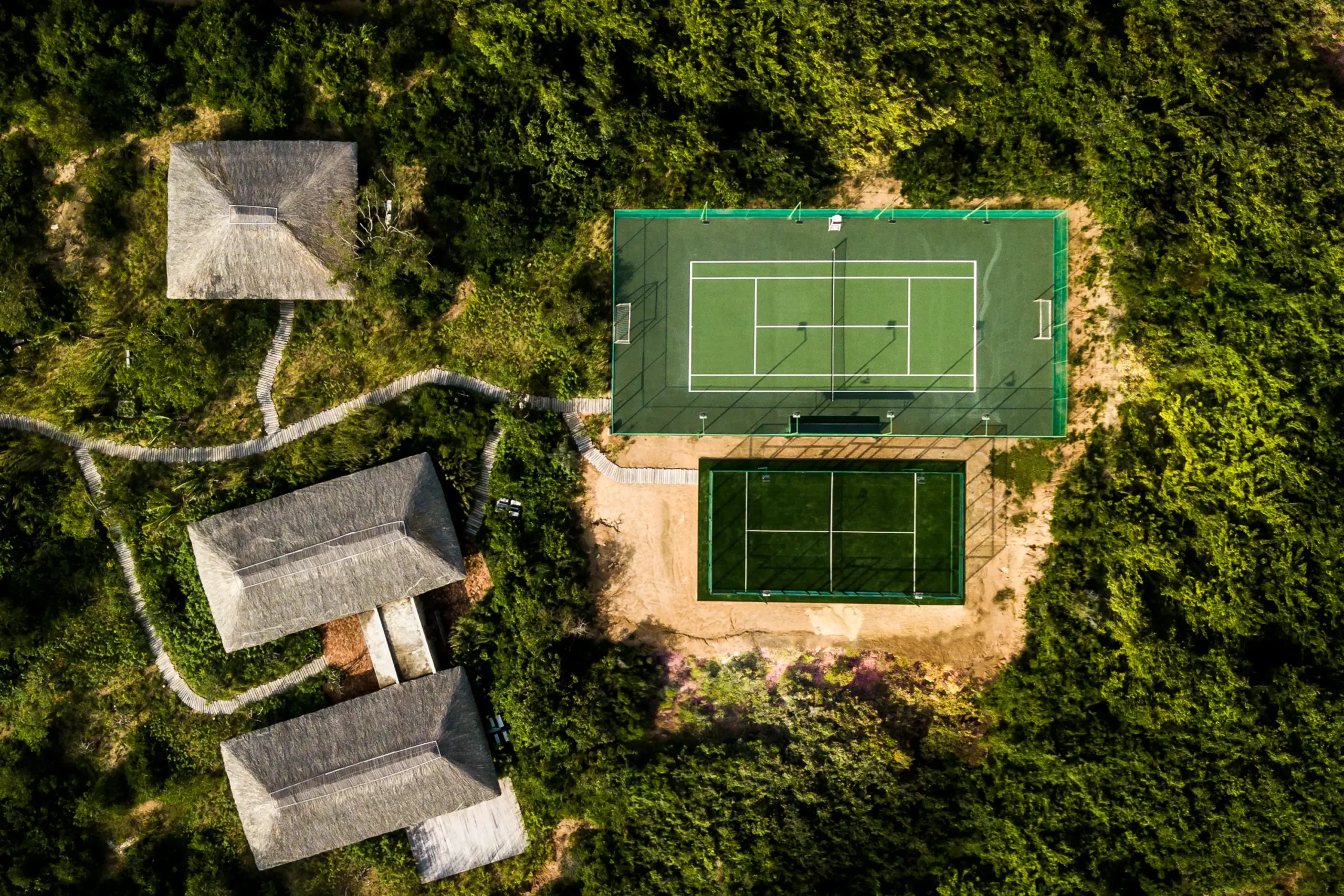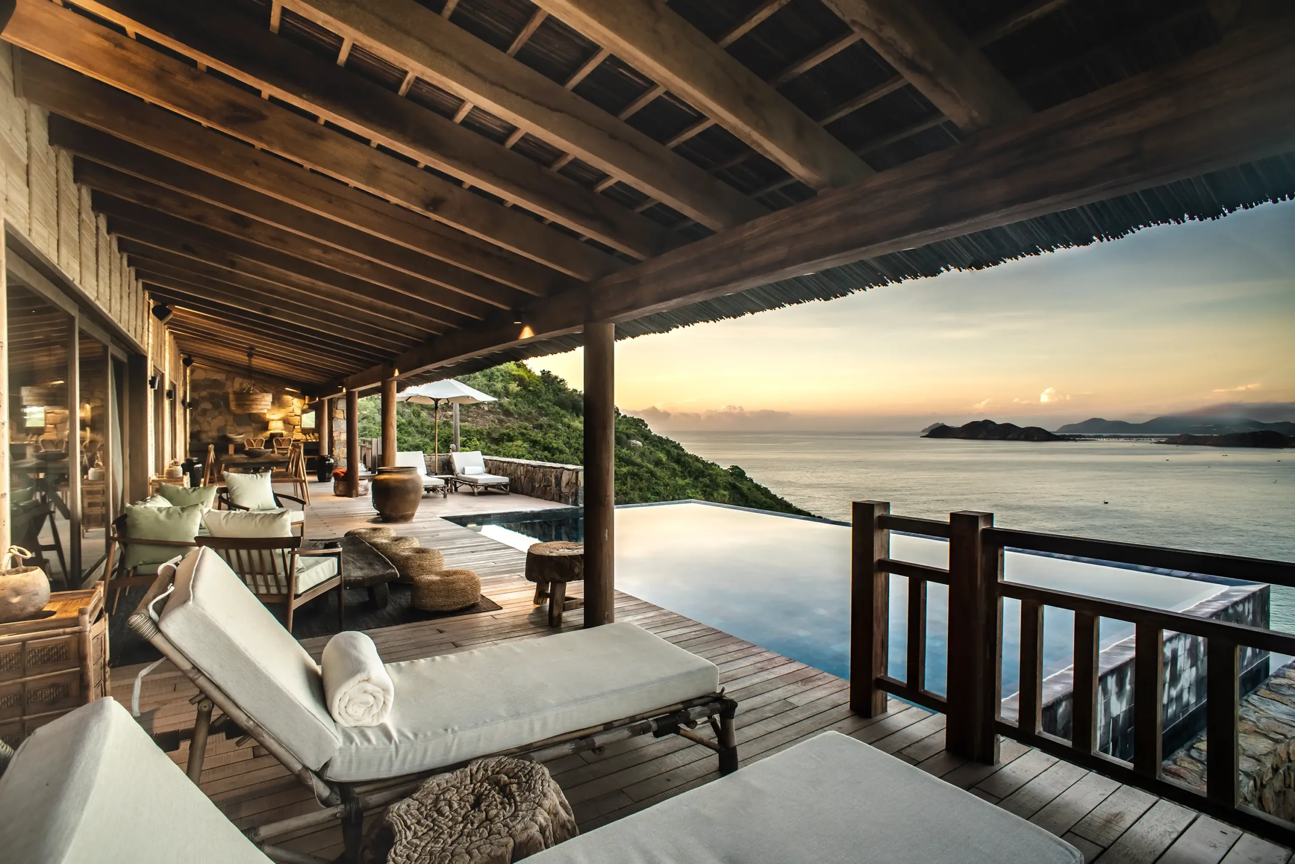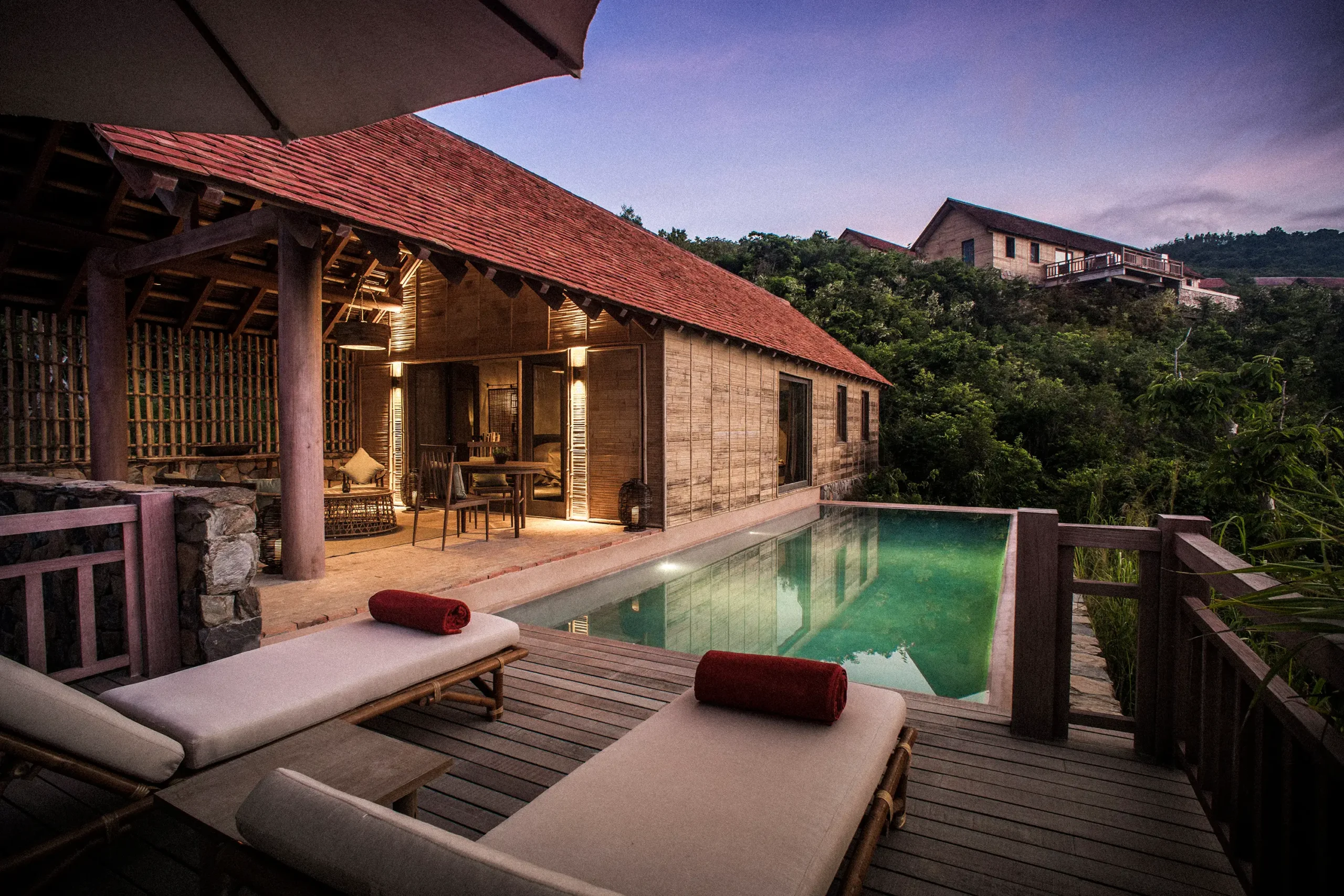 Idéales pour les amis et la famille, ces villas à deux niveaux disposent de quatre chambres, chacune avec salle de bains privative, et offrent une vue imprenable sur le resort. L’intérieur comprend une cuisine ouverte, une salle à manger et un salon, tandis que la chambre principale bénéficie de son propre balcon privé. À l’extérieur, terrasses privées, solariums, piscine à débordement et loggia permettent de profiter pleinement de la vie en plein air.