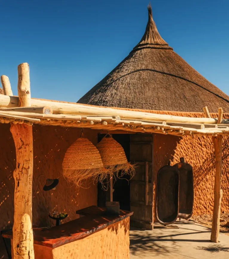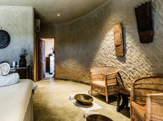 Dans l’intimité d’une hutte traditionnelle, le spa honore les rituels de guérison namibiens transmis de génération en génération. Chaque massage et soin du visage compose avec les trésors de la terre : racines médicinales, herbes sauvages et épices locales pour une régénération profonde.
