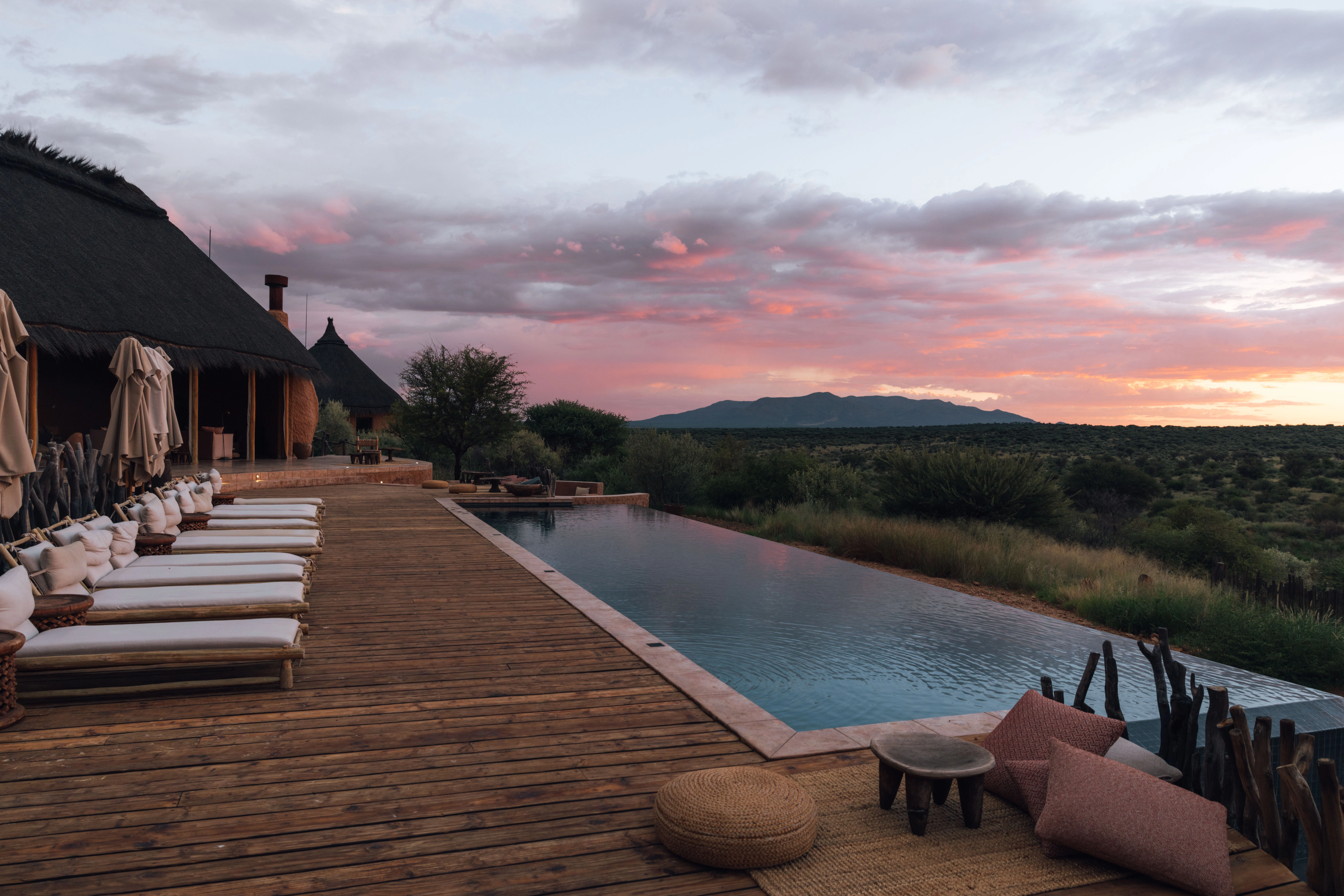 La piscine à débordement de 15 mètres s’étire vers l’horizon infini de la savane. Sur la grande terrasse en bois, les hôtes alternent baignades, moments de farniente et observation de la faune qui évolue librement sous leurs yeux.