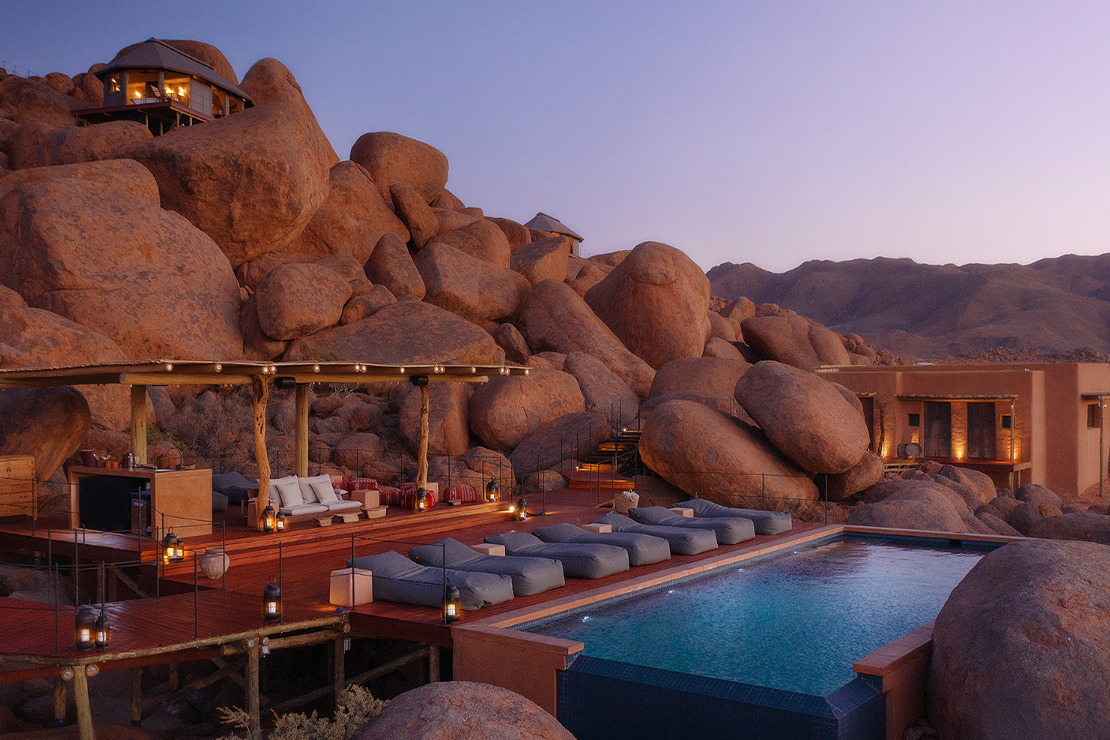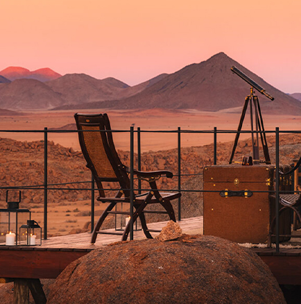 Situé au cœur d’une réserve naturelle de 5 550 hectares, dans le désert sauvage et préservé du Namib, notre lodge composé de dix suites sous tente est construit sur des rochers de granit dans un style colonial britannique authentique des années 1920. À perte de vue, une beauté captivante et une liberté sans limites vous entourent, pour des aventures du lever au coucher du soleil.