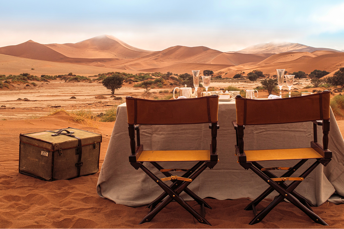 Dix suites sous tente dans un lodge safari années 1920, au cœur de 5 600 hectares de réserve privée dans le désert du Namib, l'un des plus spectaculaires au monde.
