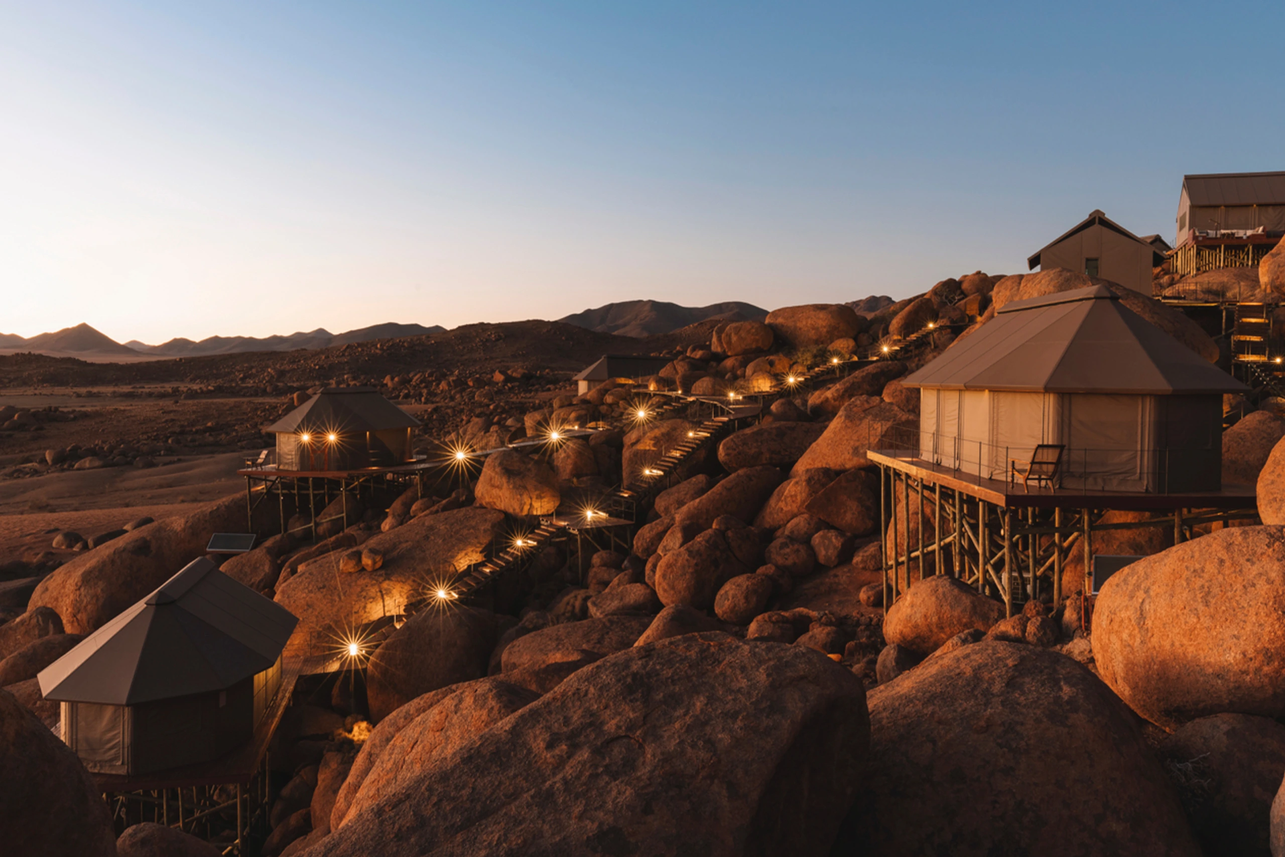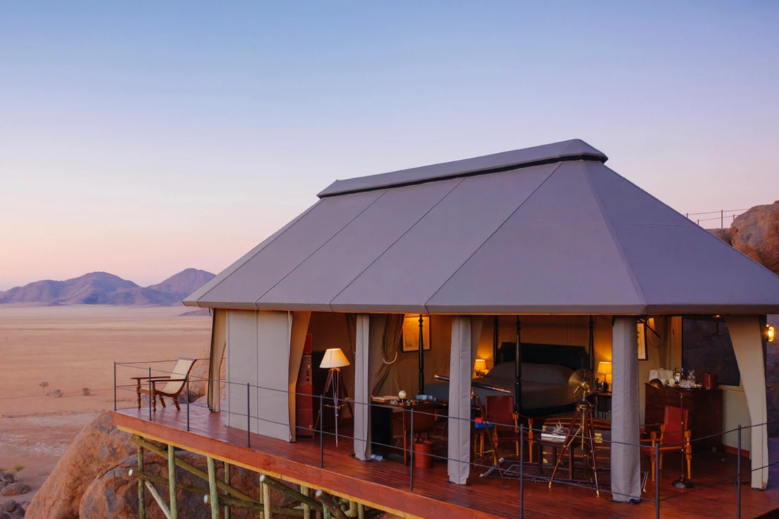 Grâce à leurs parois en toile enroulables, à leur terrasse privée offrant des vues panoramiques sur le désert et à leur salon séparé au style aventurier, nos tentes d’une chambre sont idéales pour les couples ou les jeunes familles en quête d’évasion.