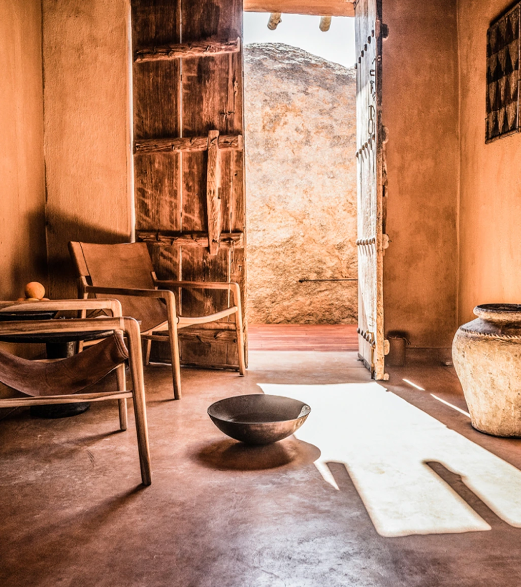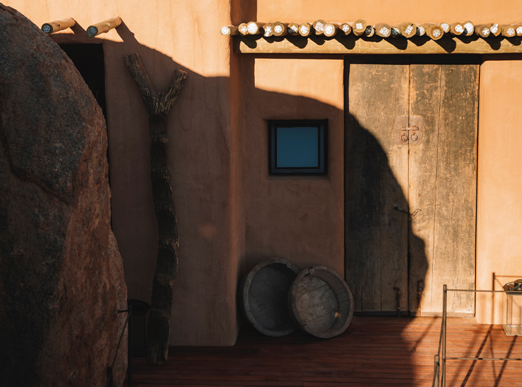 Reminiscent of traditional construction, the spa building harmoniously integrates elegance with nature, creating a peaceful sanctuary against the backdrop of the open desert.