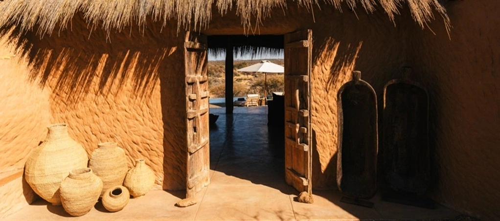 15-hut Owambo-style lodge set in 22,000-acre of Namibian wilderness with privileged access to conservation projects for elephants, rhinos and big cats.