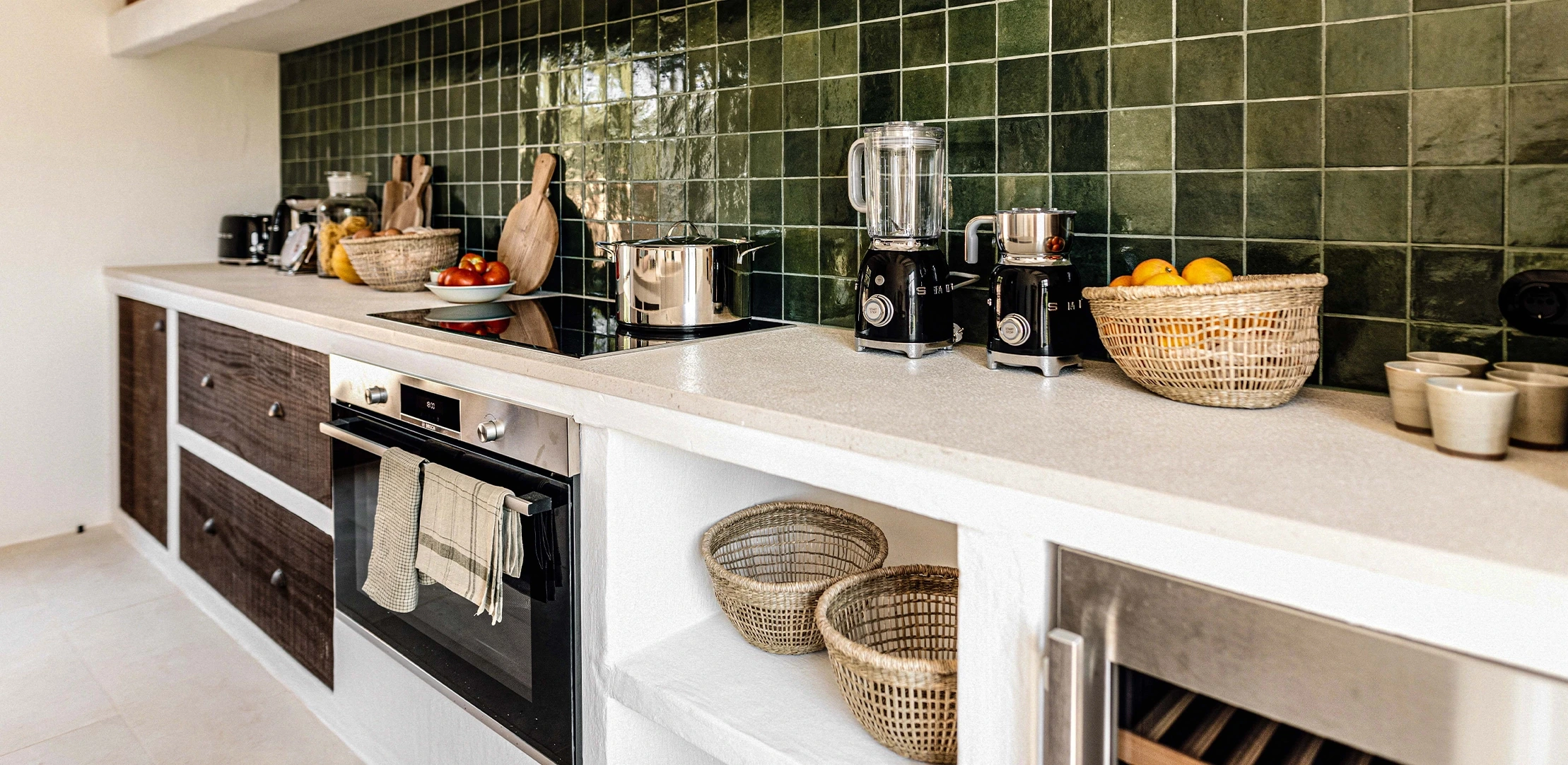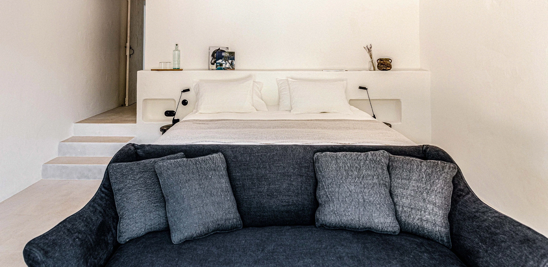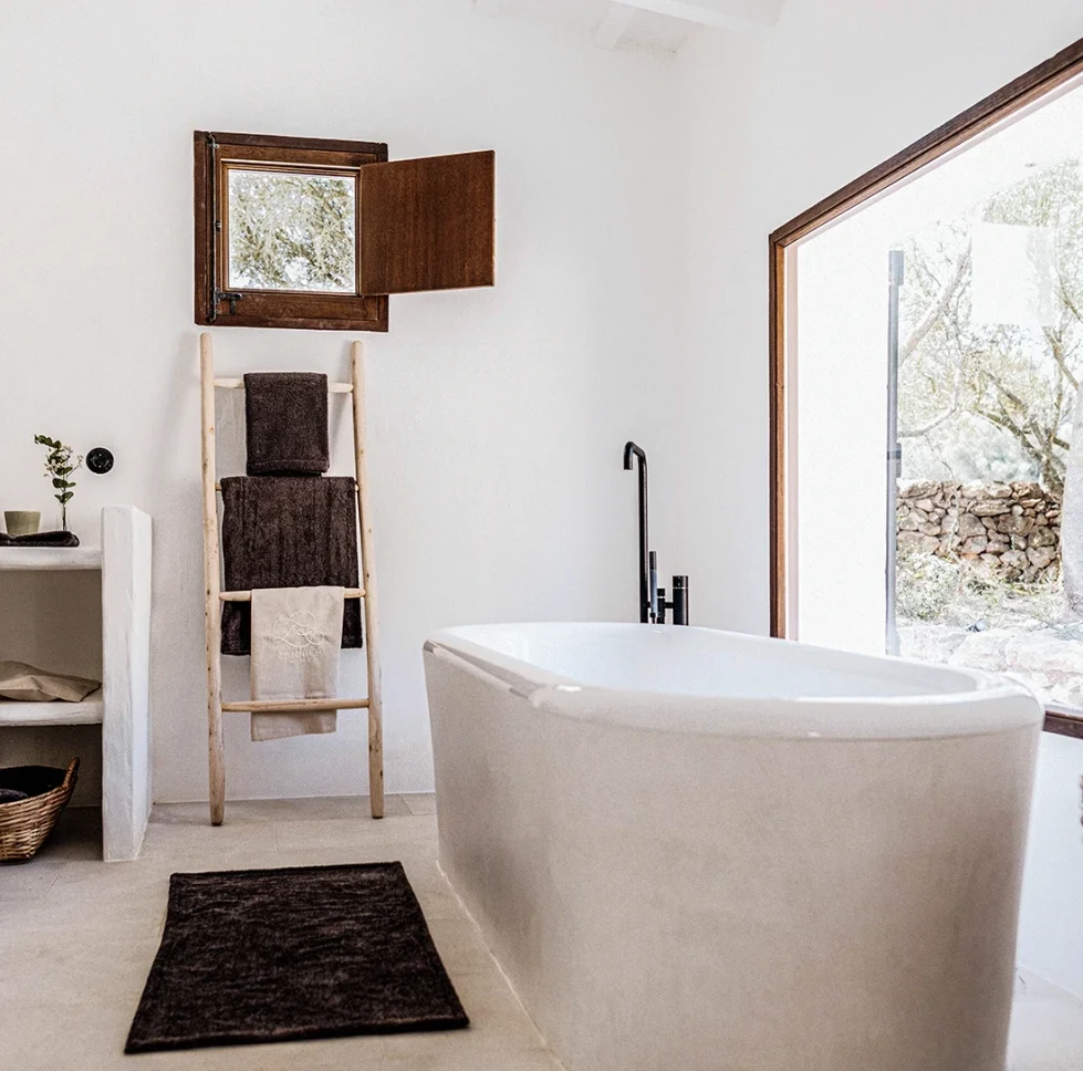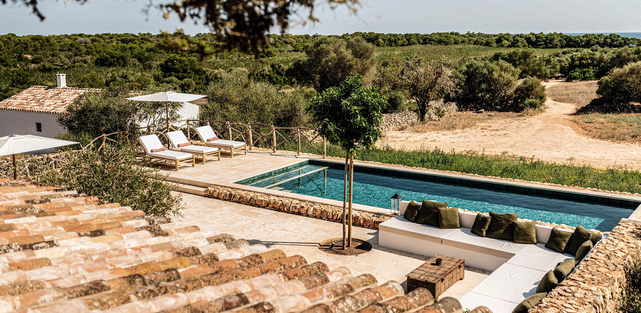 The Finca’s private 50-hectare estate features preserved Mediterranean landscapes including lush gardens with an organic vegetable garden, farmland and forest. Interiors of the 5-bedroom farmhouse blend contemporary simplicity with authenticity, enhanced by carefully selected local antiques, textiles and artworks. Open-plan living spaces feature a kitchen with central island and a generous living-dining room with fireplace, perfect for gatherings. Outside, a shaded pergola welcomes pre-dinner drinks, while a traditional wood-fired oven and spacious pool house by the large heated swimming pool create the ideal setting for long evenings savoring local cuisine al-fresco.